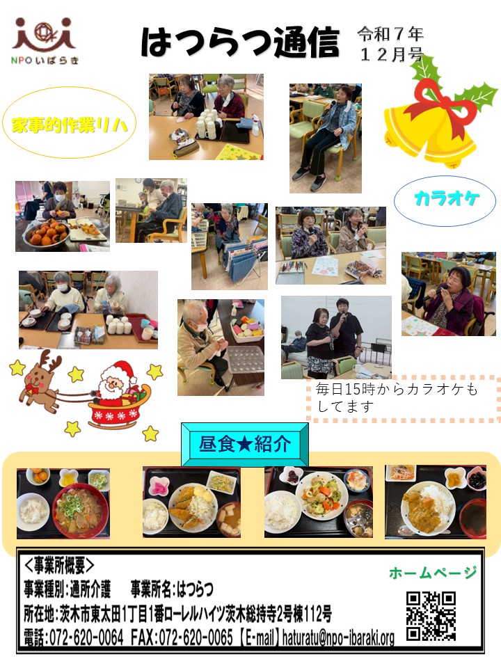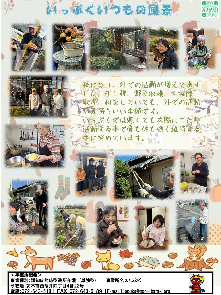 2025年12月号_各事業所の月刊誌です。 2025.12.15いっぷく, おさんぽ, お知らせ, はつらつ Tweet Share Hatena Pocket RSS feedly Pin it Tweet Share Hatena Pocket RSS feedly Pin it 投稿者: admin いっぷく, おさんぽ, お知らせ, はつらつ 2025年11月号_各事業所の月刊誌です。 「茨木市働きやすい職場づくり推進事業所」の認定 関連記事一覧 2025年11月号_各事業所の月刊誌です。 法人で2人目の“大阪府認知症介護指導者”が誕生! オレンジカフェいっぷく(8/11) 秋の秋刀魚祭り 2023年11月号_各事業所の月刊誌です。 猫を保護しています。 新型コロナウイルス感染症について 梅ジュース 就労移行支援事業所からの実習生の受け入れ