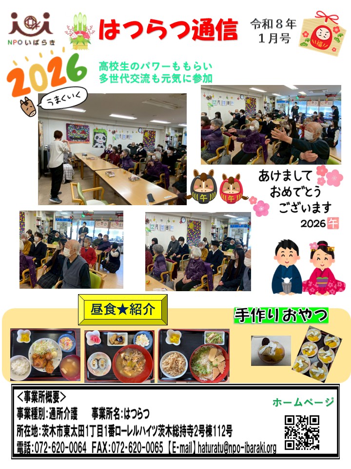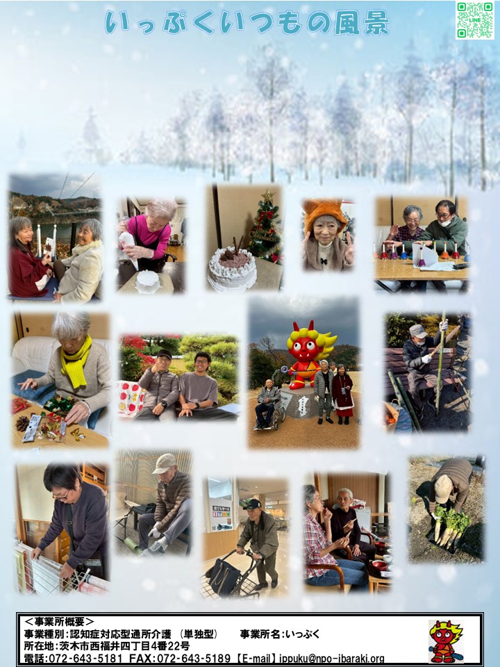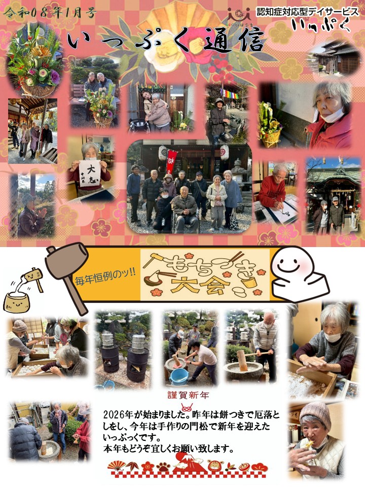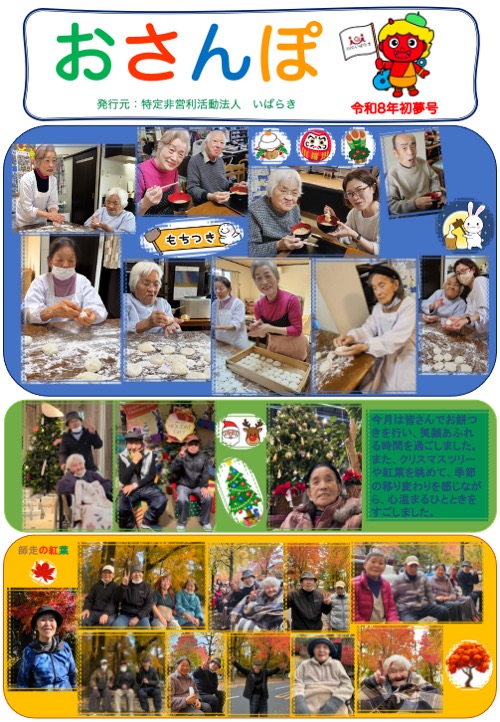 2026年1月号_各事業所の月刊誌です。 2026.01.15いっぷく, おさんぽ, お知らせ, はつらつ Tweet Share Hatena Pocket RSS feedly Pin it Tweet Share Hatena Pocket RSS feedly Pin it 投稿者: admin いっぷく, おさんぽ, お知らせ, はつらつ #おさんぽ, #おやつ, #オレンジカフェ, #作業療法, #自然, #茨木市, #認知症 謹賀新年 関連記事一覧 法人全体研修 〜認知症ケア〜 法人全体研修~求められる認知症観~ 2025年10月号_各事業所の月刊誌です。 2022年度 追手門インターンシップ 障がい者の職場実習 お花見 法人懇親会 〜事業所の垣根をこえて〜 2025年3月号_各事業所の月刊誌です。 2025年1月号_各事業所の月刊誌です。